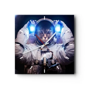 Reloj de pared - Reloj de vidrio - Un gato en un traje de astronauta con la Tierra al fondo y una luz brillante. - 30x30cm - Houston, tienes un problema. - Decoración de pared moderna para salón y dormitorio ARTTOR