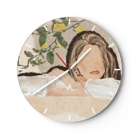 Reloj de pared - Reloj de vidrio - Una mujer con cabello largo frente a un limonero. - 30x30cm - La belleza del sur - Decoración de pared moderna para salón, cocina y dormitorio ARTTOR