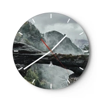 Reloj de pared - Reloj de vidrio - Paisaje de montaña brumoso con un puente de roca natural - 30x30cm - La aventura está a punto de comenzar - Decoración de pared moderna para salón, cocina y dormitorio ARTTOR