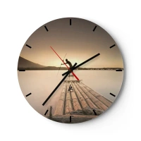 Reloj de pared - Reloj de vidrio - Un muelle en el lago bajo los rayos del sol poniente. - 30x30cm - Es hora de volver... - Decoración de pared moderna para salón, cocina y dormitorio ARTTOR