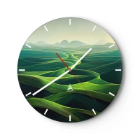 Reloj de pared - Reloj de vidrio - Valles y colinas verdes en un enfoque artístico del paisaje - 30x30cm - Valles en tonos verdes - Decoración de pared moderna para salón, cocina y dormitorio ARTTOR