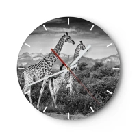 Reloj de pared - Reloj de vidrio - Una fotografía en blanco y negro de dos jirafas en la sabana. - 30x30cm - La clase alta de África - Decoración de pared moderna para salón, cocina y dormitorio ARTTOR