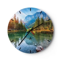 Reloj de pared - Reloj de vidrio - Paisaje de montaña con lago y bosque. - 30x30cm - La dulzura del otoño - Decoración de pared moderna para salón, cocina y dormitorio ARTTOR