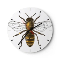 Reloj de pared - Reloj de vidrio - Ilustración de una abeja con las alas extendidas sobre un fondo blanco - 30x30cm - Bondad natural - Decoración de pared moderna para salón, cocina y dormitorio ARTTOR