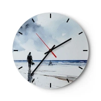 Reloj de pared - Reloj de vidrio - Una figura en la playa mirando al mar. - 30x30cm - Conversación con el mar - Decoración de pared moderna para salón, cocina y dormitorio ARTTOR