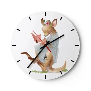 Reloj de pared - Reloj de vidrio - Una madre canguro leyendo un libro con su bebé en su regazo. - 30x30cm - Léeme un cuento, mamá - Decoración de pared moderna para salón, cocina y dormitorio ARTTOR