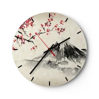 Reloj de pared - Reloj de vidrio - Pintura tradicional japonesa de acuarela de una montaña y flores de cerezo. - 30x30cm - Enamórate de Japón - Decoración de pared moderna para salón, cocina y dormitorio ARTTOR