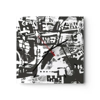 Reloj de pared - Reloj de vidrio - Patrón retro monocromático abstracto - 30x30cm - ¿Orden o caos? - Decoración de pared moderna para salón y dormitorio ARTTOR