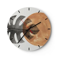 Reloj de pared - Reloj de vidrio - Una hoja de monstera contra un gran círculo naranja como el sol. - 30x30cm - Siempre el sol - Decoración de pared moderna para salón, cocina y dormitorio ARTTOR