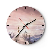 Reloj de pared - Reloj de vidrio - Una mujer en un muelle en un paisaje mágico y pastel. - 30x30cm - A la luz de un sueño - Decoración de pared moderna para salón, cocina y dormitorio ARTTOR