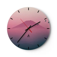 Reloj de pared - Reloj de vidrio - Una montaña al anochecer con tonos rosados y morados. - 30x30cm - Sobre las nubes - Decoración de pared moderna para salón, cocina y dormitorio ARTTOR