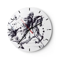 Reloj de pared - Reloj de vidrio - Jinete de caballo en acuarela en blanco y negro - 30x30cm - Caballero negro - Decoración de pared moderna para salón, cocina y dormitorio ARTTOR