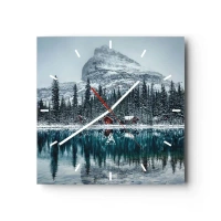 Reloj de pared - Reloj de vidrio - Paisaje invernal con cabañas en el bosque junto a un lago congelado - 30x30cm - Retiro canadiense - Decoración de pared moderna para salón y dormitorio ARTTOR