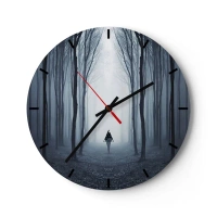 Reloj de pared - Reloj de vidrio - Un bosque oscuro en la niebla con una figura misteriosa. - 30x30cm - Alto y claro - Decoración de pared moderna para salón, cocina y dormitorio ARTTOR