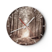 Reloj de pared - Reloj de vidrio - Una avenida de árboles en un paisaje otoñal con perspectiva hacia las profundidades. - 30x30cm - La catedral del bosque - Decoración de pared moderna para salón, cocina y dormitorio ARTTOR