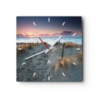 Reloj de pared - Reloj de vidrio - Playa al atardecer con hierbas altas - 30x30cm - Dulce nana del Báltico - Decoración de pared moderna para salón y dormitorio ARTTOR