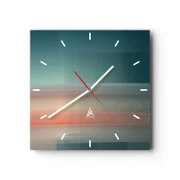 Reloj de pared - Reloj de vidrio - Una puesta de sol en tonos pastel sobre un horizonte tranquilo. - 30x30cm - Abstracción: ondas de luz - Decoración de pared moderna para salón y dormitorio ARTTOR