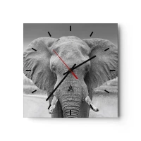 Reloj de pared - Reloj de vidrio - Retrato de un elefante en blanco y negro - 30x30cm - Bienvenido a mi mundo - Decoración de pared moderna para salón y dormitorio ARTTOR