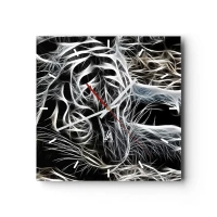 Reloj de pared - Reloj de vidrio - Un patrón abstracto que representa la silueta de un gato sobre un fondo negro. - 30x30cm - Un estudio sobre la ligereza felina - Decoración de pared moderna para salón y dormitorio ARTTOR