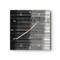 Reloj de pared - Reloj de vidrio - Composición abstracta de líneas en blanco y negro contrastantes. - 30x30cm - Ondas y vibraciones - Decoración de pared moderna para salón y dormitorio ARTTOR