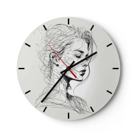 Reloj de pared - Reloj de vidrio - Boceto en blanco y negro del rostro de una mujer pensativa. - 30x30cm - Retrato de ensueño - Decoración de pared moderna para salón, cocina y dormitorio ARTTOR
