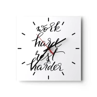 Reloj de pared - Reloj de vidrio - Cita sobre fondo blanco: trabaja duro y descansa más. - 30x30cm - Balance de vida - Decoración de pared moderna para salón y dormitorio ARTTOR