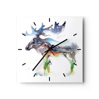 Reloj de pared - Reloj de vidrio - Silueta de acuarela de un alce con un paisaje montañoso. - 30x30cm - El héroe de un cuento de invierno - Decoración de pared moderna para salón y dormitorio ARTTOR