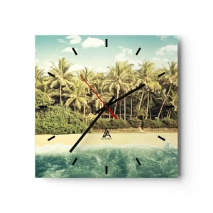 Reloj de pared - Reloj de vidrio - Playa tropical con palmeras y mar turquesa. - 30x30cm - ¿Qué tal aquí? - Decoración de pared moderna para salón y dormitorio ARTTOR