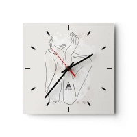 Reloj de pared - Reloj de vidrio - Línea de contorno que muestra las manos de una mujer sobre un fondo claro - 30x30cm - Un momento de ensueño - Decoración de pared moderna para salón y dormitorio ARTTOR