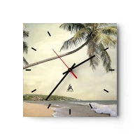 Reloj de pared - Reloj de vidrio - Una playa con palmeras con el mar en calma como telón de fondo. - 30x30cm - Sueño tropical - Decoración de pared moderna para salón y dormitorio ARTTOR