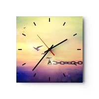 Reloj de pared - Reloj de vidrio - Símbolo de libertad con pájaros y una cadena rota. - 30x30cm - Victoria de la libertad - Decoración de pared moderna para salón y dormitorio ARTTOR