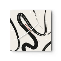Reloj de pared - Reloj de vidrio - Composición abstracta de líneas en blanco y negro contrastantes. - 30x30cm - Ondas y vibraciones - Decoración de pared moderna para salón y dormitorio ARTTOR