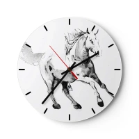 Reloj de pared - Reloj de vidrio - Boceto de un caballo al galope sobre un fondo blanco. - 30x30cm - Alma indómita - Decoración de pared moderna para salón, cocina y dormitorio ARTTOR