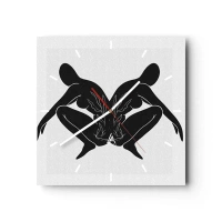 Reloj de pared - Reloj de vidrio - Siluetas negras en posición simétrica sobre un fondo blanco. - 30x30cm - Un alma compartida - Decoración de pared moderna para salón y dormitorio ARTTOR