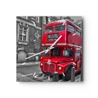 Reloj de pared - Reloj de vidrio - Un autobús rojo de dos pisos en Londres con un fondo de arquitectura clásica. - 30x30cm - El mismo de siempre - Decoración de pared moderna para salón y dormitorio ARTTOR