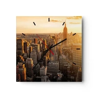 Reloj de pared - Reloj de vidrio - El horizonte de la ciudad de Nueva York al atardecer con vistas al Empire State Building - 30x30cm - Creciendo al sol - Decoración de pared moderna para salón y dormitorio ARTTOR