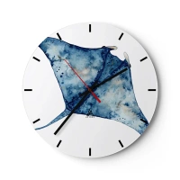 Reloj de pared - Reloj de vidrio - Manta raya azul marino en estilo acuarela sobre fondo blanco - 30x30cm - La vida en azul - Decoración de pared moderna para salón, cocina y dormitorio ARTTOR