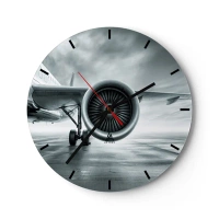 Reloj de pared - Reloj de vidrio - Vista del motor de un avión de pasajeros en la pista del aeropuerto. - 30x30cm - Hay poder - Decoración de pared moderna para salón, cocina y dormitorio ARTTOR