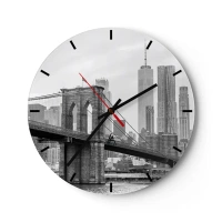 Reloj de pared - Reloj de vidrio - El puente de Brooklyn contra el horizonte de la ciudad en blanco y negro - 30x30cm - Vibraciones de Nueva York - Decoración de pared moderna para salón, cocina y dormitorio ARTTOR