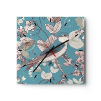 Reloj de pared - Reloj de vidrio - Un pájaro en una rama en un delicado estilo floral. - 30x30cm - En el cerezo - Decoración de pared moderna para salón y dormitorio ARTTOR