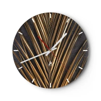Reloj de pared - Reloj de vidrio - Hojas de palma doradas sobre un fondo oscuro - 30x30cm - El oro de los trópicos - Decoración de pared moderna para salón, cocina y dormitorio ARTTOR