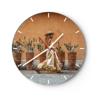 Reloj de pared - Reloj de vidrio - Mujer hippie estilizada sobre un fondo de macetas con cactus. - 30x30cm - Estilo hippie - Decoración de pared moderna para salón, cocina y dormitorio ARTTOR
