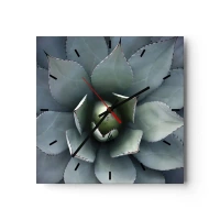 Reloj de pared - Reloj de vidrio - Primer plano de una roseta de agave en delicados tonos verdes. - 30x30cm - Perfección natural - Decoración de pared moderna para salón y dormitorio ARTTOR