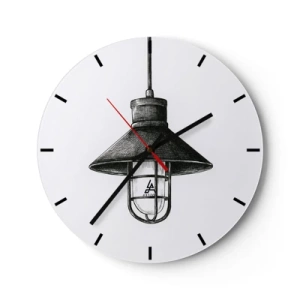 Reloj de pared - Reloj de vidrio - Lámpara colgante industrial negra sobre fondo blanco. - 30x30cm - Como hace años... - Decoración de pared moderna para salón, cocina y dormitorio ARTTOR