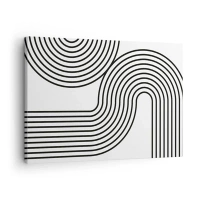 Cuadro sobre lienzo - Impresión de Imagen - Una pintura abstracta con líneas negras que crean patrones geométricos sobre un fondo blanco. - 70x50cm - En una curva - Decoración de pared moderna para salón y dormitorio ARTTOR