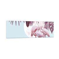 Cuadro sobre vidrio - Impresiones sobre Vidrio - Flamencos rosados con la luna y las hojas tropicales como telón de fondo. - 160x50cm - La grandeza de las aves - Decoración de pared moderna para salón y dormitorio ARTTOR