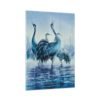 Cuadro sobre vidrio - Impresiones sobre Vidrio - Grúas sobre un fondo de niebla y agua en tonos azules. - 80x120cm - Reunión matinal - Decoración de pared moderna para salón y dormitorio ARTTOR