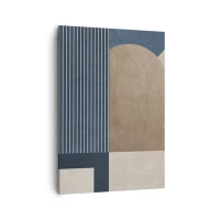 Cuadro sobre lienzo - Impresión de Imagen - Figuras geométricas en tonos beige y azul marino con líneas. - 50x70cm - Composición de sencillez y redondez - Decoración de pared moderna para salón y dormitorio ARTTOR