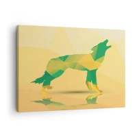 Cuadro sobre lienzo - Impresión de Imagen - Silueta geométrica de lobo en tonos verdes y amarillos. - 70x50cm - Lobo solitario - Decoración de pared moderna para salón y dormitorio ARTTOR