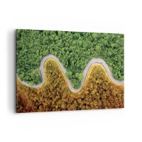 Cuadro sobre lienzo - Impresión de Imagen - Un camino sinuoso a través del bosque visto a vista de pájaro. - 120x80cm - Frontera serpenteante - Decoración de pared moderna para salón y dormitorio ARTTOR